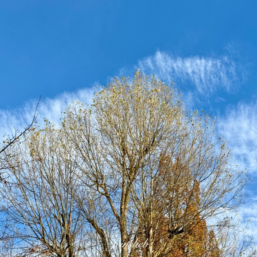 3. Der Nussbaum hat seine Blätter schon komplett abgeworfen, aber die Platane leuchtet herbstlich gelborange.