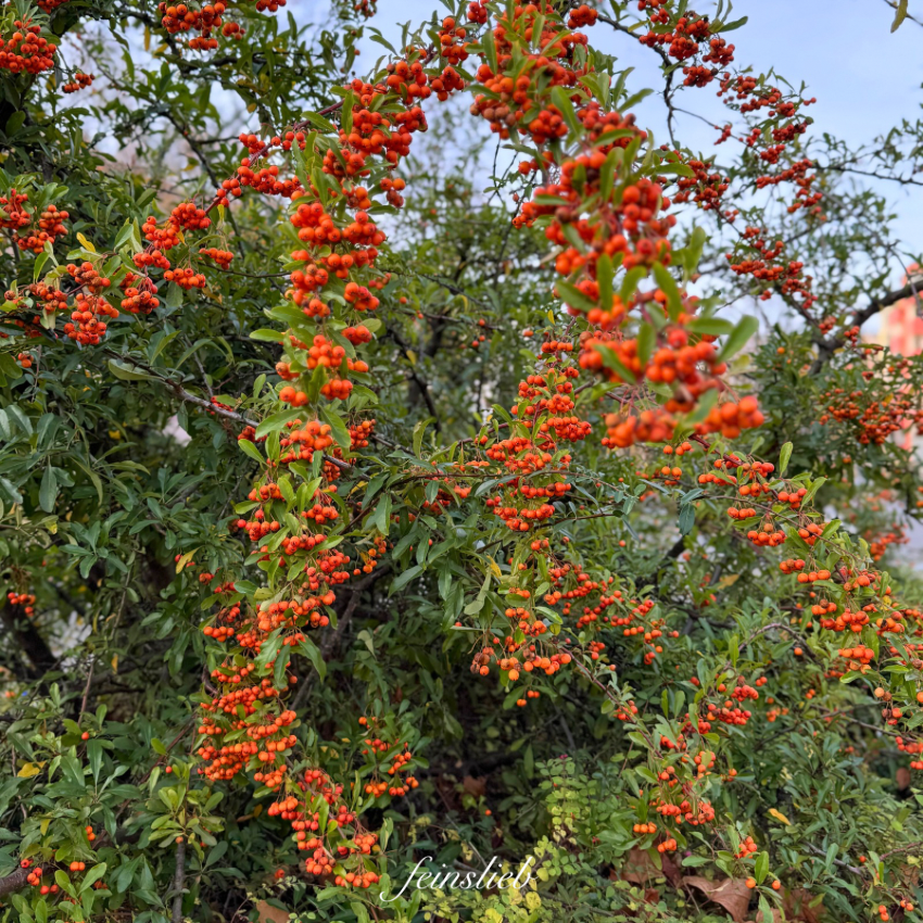 12. Glücklicherweise gibt es viele Vogelbeeren, da haben die Piepmätze im Winter was zu fressen, wenn es hart auf hart kommt.