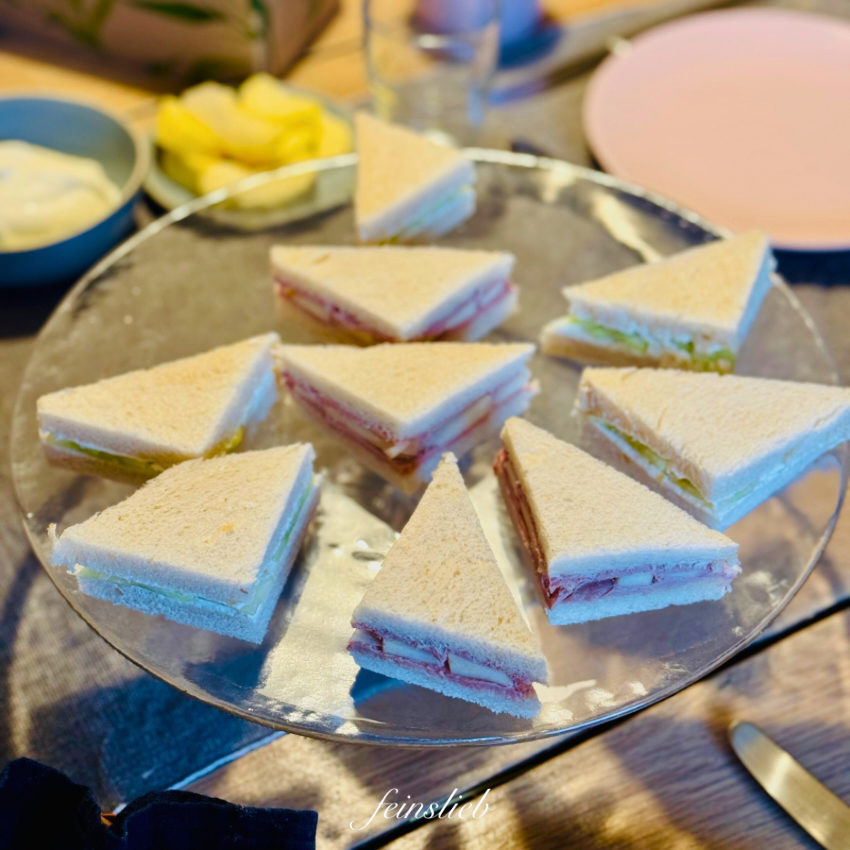… und Sandwiches mit Frischkäse/Gurken und Leberwurst/Apfel — also eigentlich das, was es bei uns traditionell am Heiligabend-Nachmittag gibt.