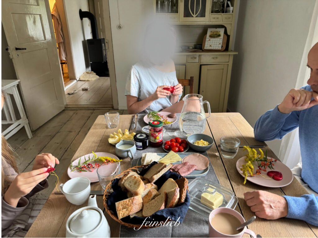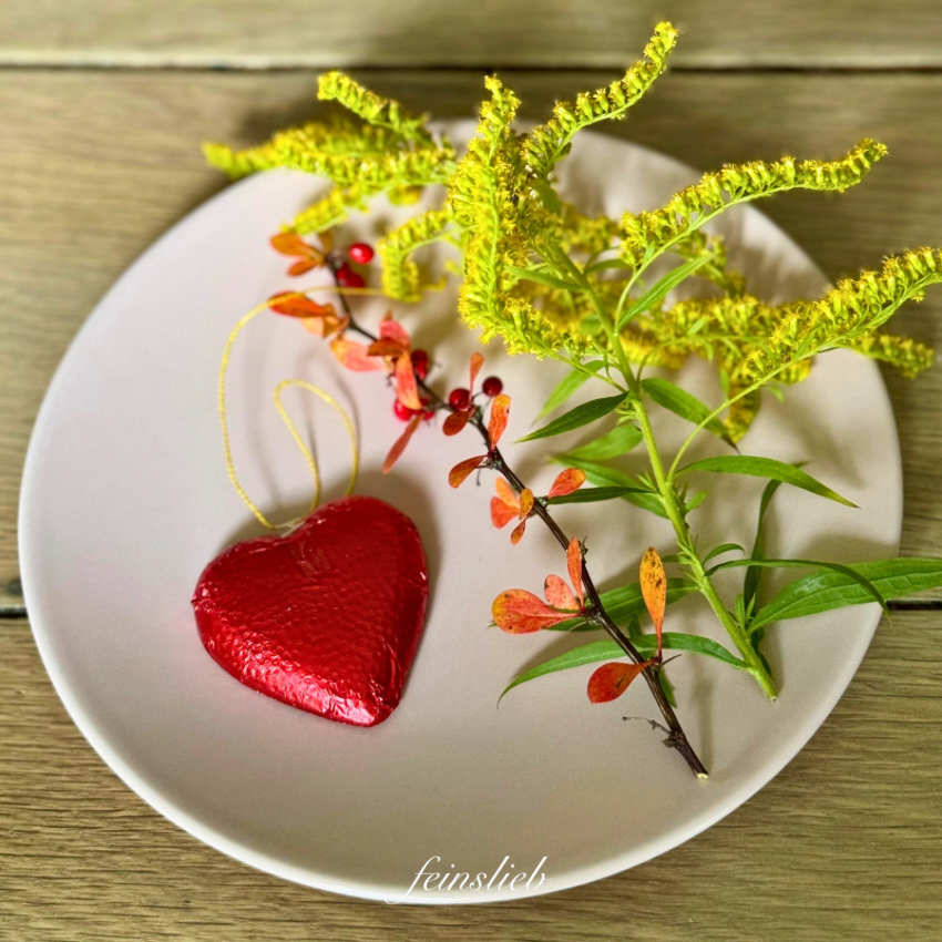 Zum Frühstück bekommen alle das traditionelle Michaeli-Mut-Herz auf den Teller. Diese Herzen gibt es von Rapunzel im Bioladen, und sie sind schweineteuer. Aber sehr, sehr lecker, nämlich mit Nougat gefüllt.