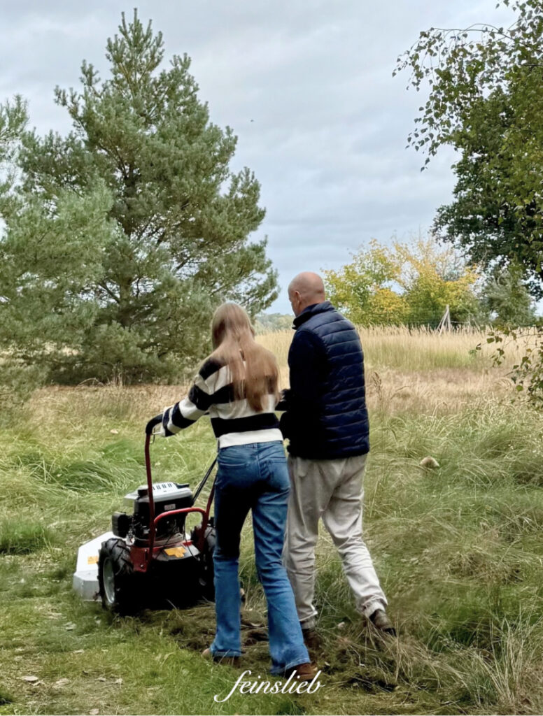Nach dem Frühstück will das Kind mal den großen Rasenmäher ausprobieren.
