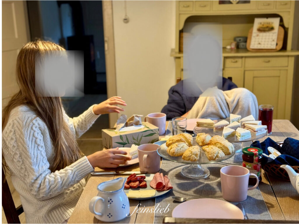 Die Kinder haben sich heute so einen Afternoon Tee gewünscht, denn beide sind ziemlich stark erkältet. Sie verbrauchen Hunderte von Taschentüchern und liegen die meiste Zeit im Bett.