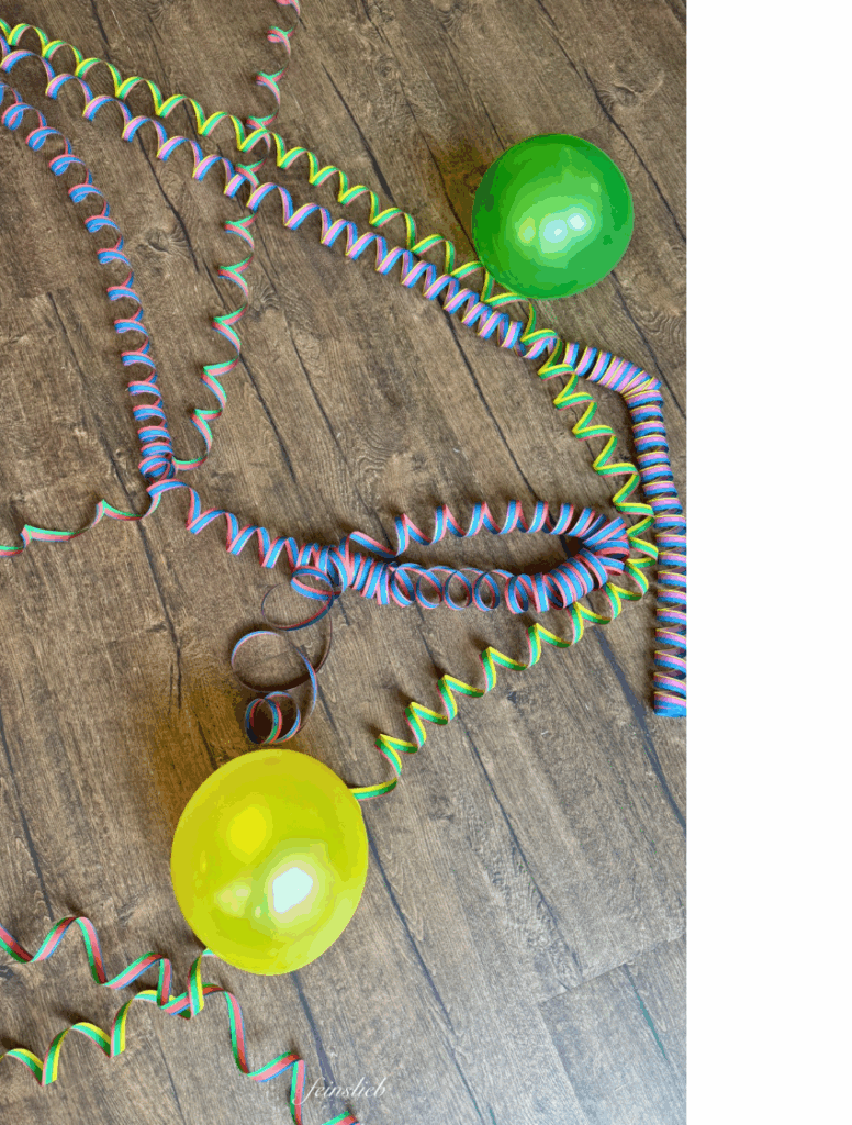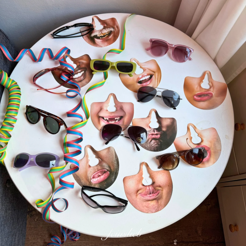 Das Kind legt doofe Masken und Brillen für die Gäste bereit, zum Verkleiden.