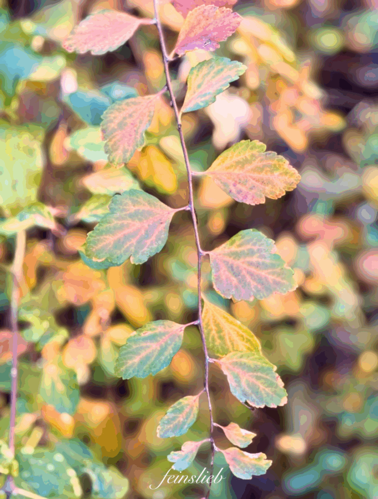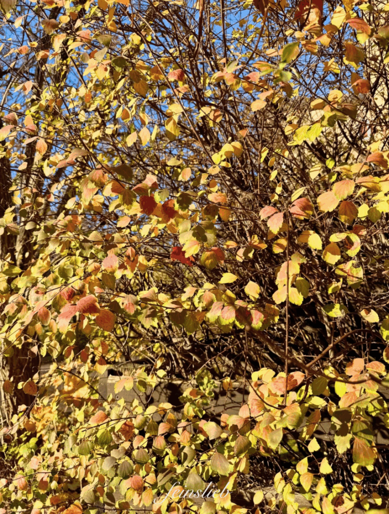 Manche Büsche sind noch voller buntem Laub.