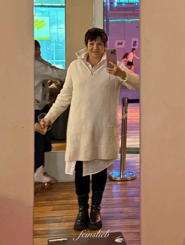 Nach dem Frühstück gehe ich für gefühlt zwei Stunden in die Badewanne und suche auf Vinted nach Weihnachtsgeschenken. Das macht mir großen Spaß, denn für 13- und 16-Jährige kann man dort echt tolle Schätze für wenig Geld finden – Kleidung und Schmuck und Deko.