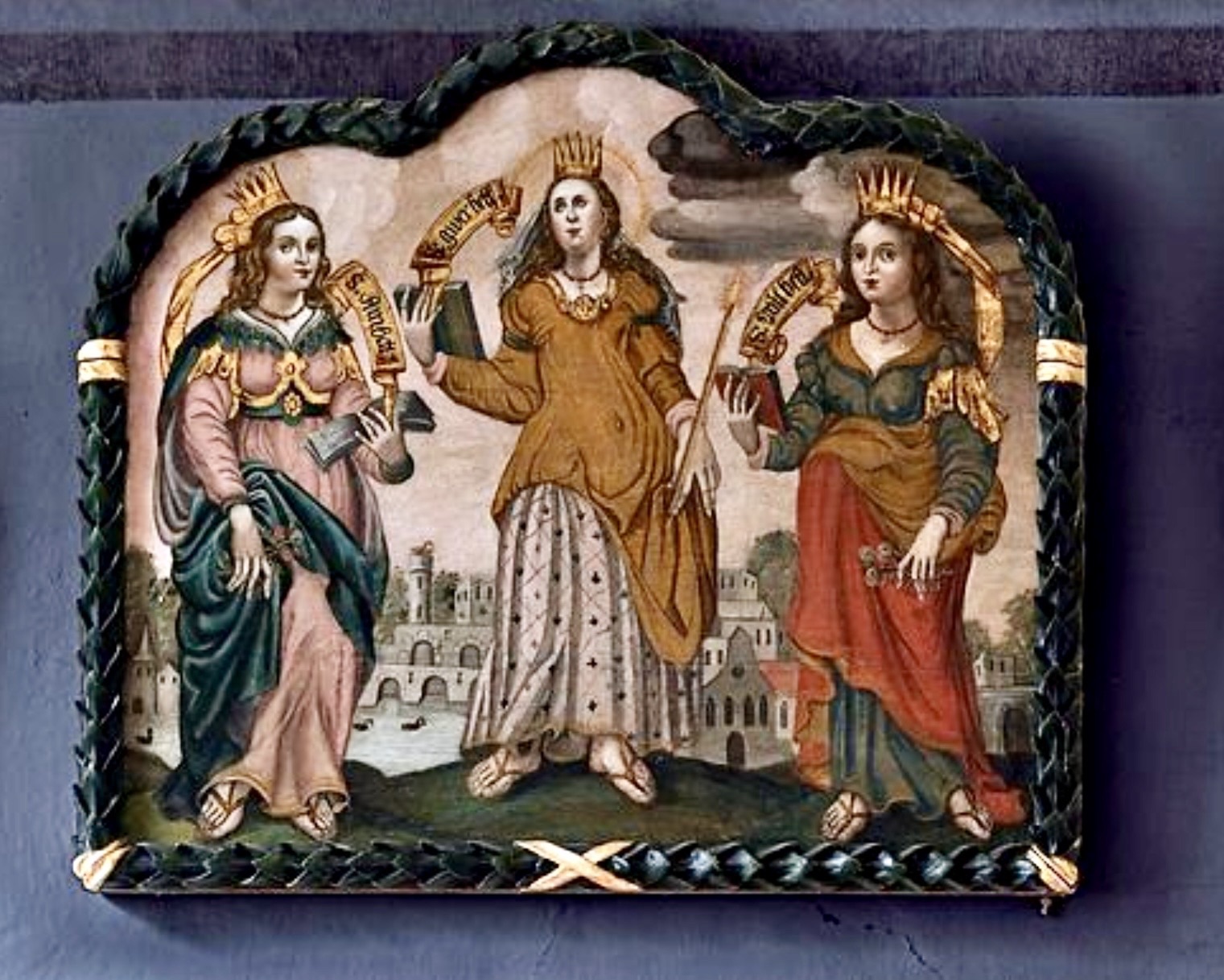 Lest gern bei Wikipedia die Legenden der drei Heiligen; keine davon ist historisch belegt. Es gab in der Geschichte durchaus Frauen mit den Namen der dreien. Aber ob sie auch nur annähernd die Märtyrerinnen-Geschichten erfahren haben, die ihnen die Legenden zusprechen, bleibt fraglich bis extrem unwahrscheinlich. Ich persönlich würde sagen: Die Foltergeschichten und den unerschütterlichen Glauben an Jesus Christus hat die Kirche sich einfach ausgedacht.