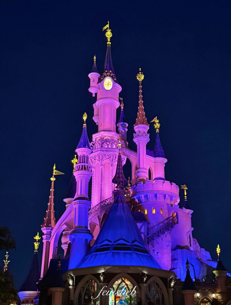 Jetzt ist es dunkel, und wir sind müde und hungrig. Die abendliche Beleuchtung des Dornröschen-Schlosses ist natürlich legendär. Anscheinend gibt es ganz oben irgendwo ein Zimmer, das im Disneyland in den USA für Walt Disney höchstpersönlich eingebaut wurde, für den Fall, dass er den Park besuchte. Die Freundin meines Kindes will unbedingt das Feuerwerk sehen, das jeden Abend veranstaltet wird, aber allen anderen ist das zu spät – bis 22 Uhr wollen wir nicht warten.