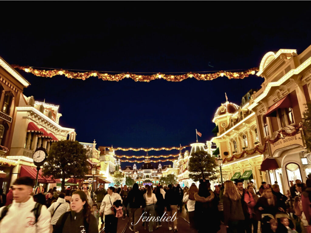 Die beiden Kinder sind bewegt und aufgeregt. Nachdem auch die Freundin im Shop direkt am Eingang ein paar Minnie-Öhrchen bekommen hat, treten sie in die magische Disney-Welt ein. Übrigens: Im Disneyland trägt so ungefähr jede zweite (weibliche) Person diese Mickey-Ohren, die man hier in ganz verschiedenen Stilen kaufen kann. Mein Kind hat welche mit rosa Pailletten und beiger Schleife (!!), die Freundin hat sich für die schwarz-roten Klassiker entschieden.