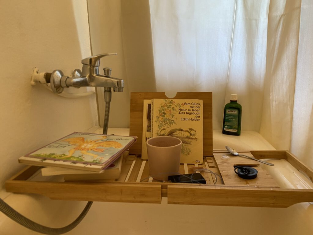 Am Abend dann ein gemütliches Bad mit meinen Gedichtbüchern und einer Tasse Kakao.