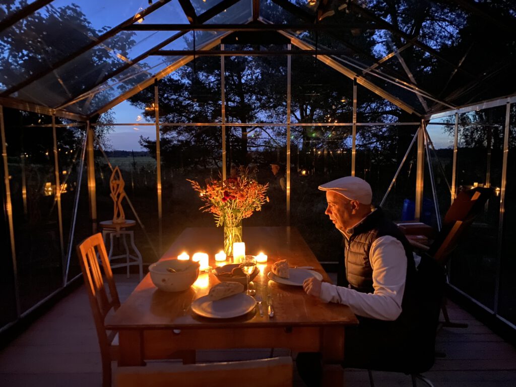 Wir bleiben noch lange sitzen, spielen uns gegenseitig Musik vor und sehen später die Sterne am Himmel glitzern. Genau für solche Momente haben wir das Glashaus gebaut.