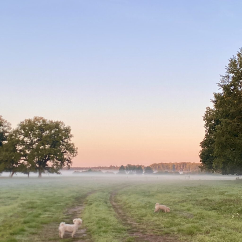 Zwischendurch gehe ich mit den Hunden in Richtung Sonnenuntergang.