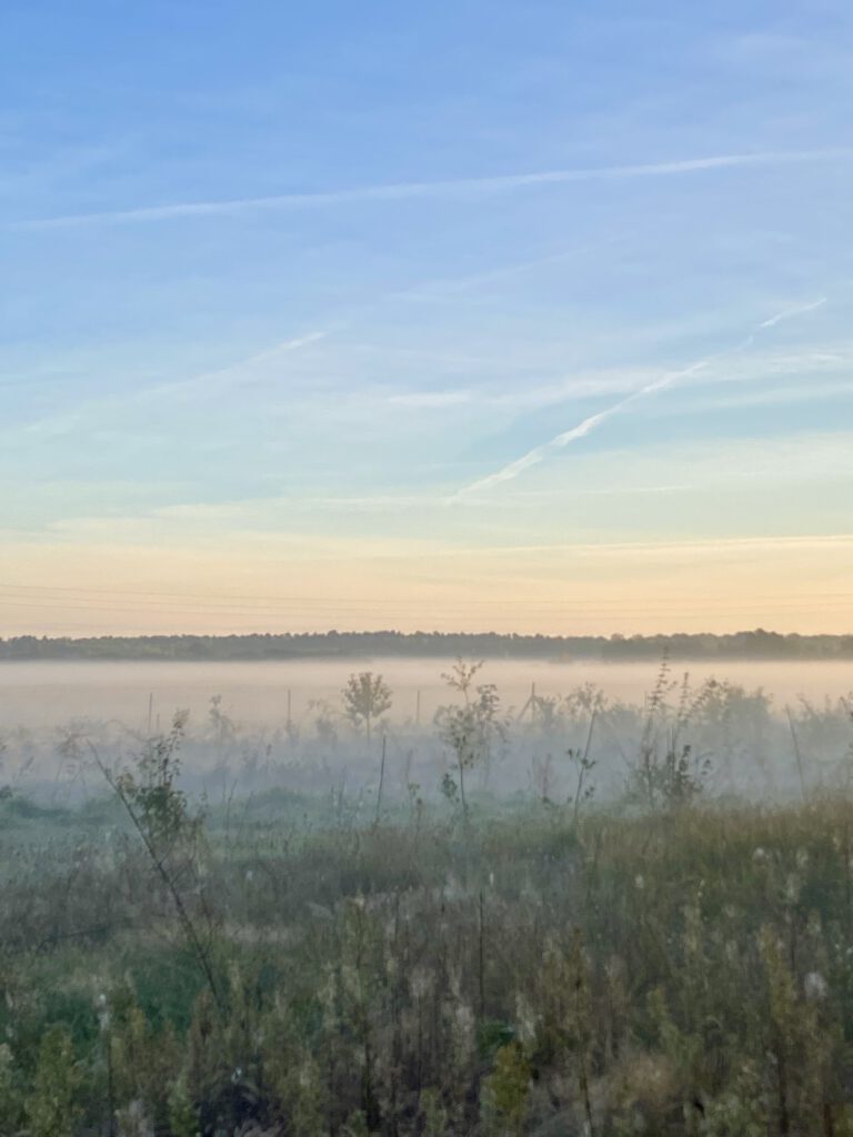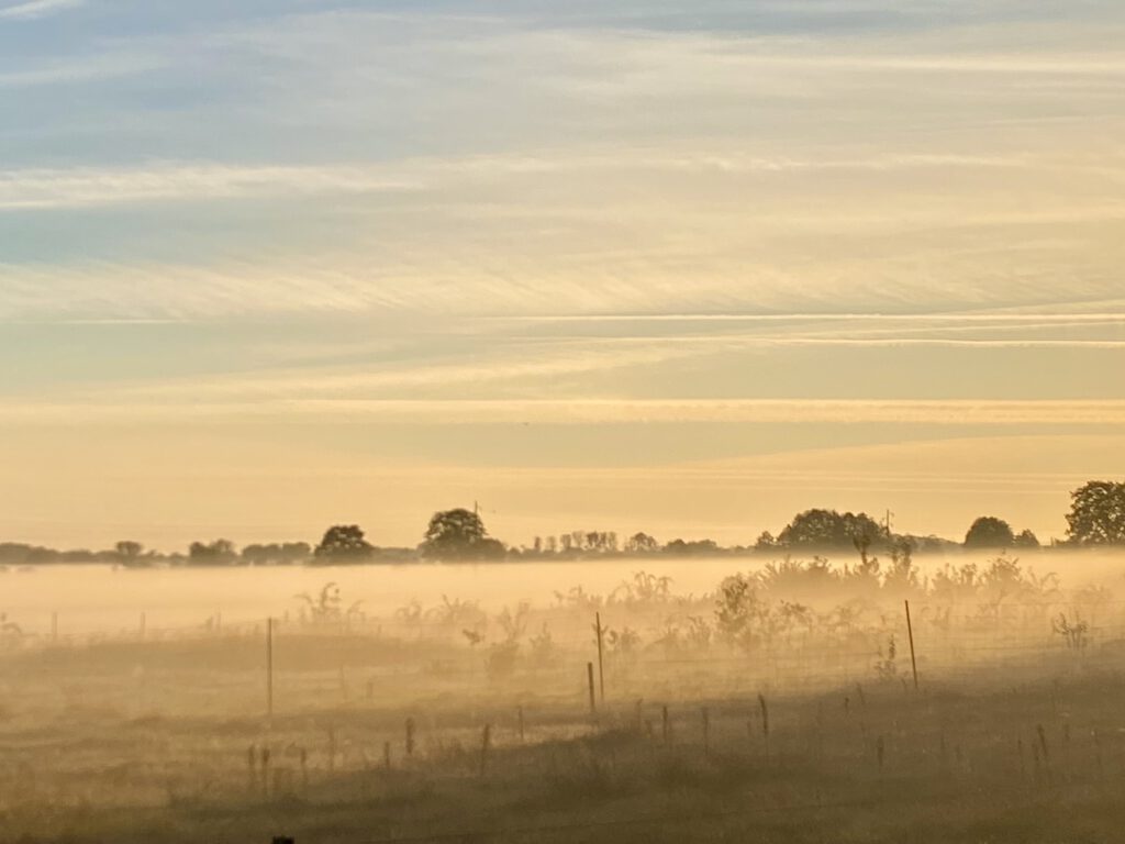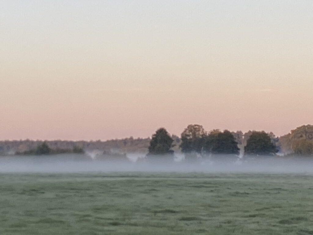 Hundespaziergang bei zartem Bodennebel. — Wie man an dem Baum links und anderen Fotos dieses Beitrags sehen kann, stellt meine Handy-Kamera nicht mehr scharf. Ich habe in den letzten beiden Wochen alles probiert, um das Problem zu beheben, habe die KI gefragt und in Nerd-Foren recherchiert — aber nichts hilft. Der Sensor ist wohl kaputt. Ich wollte dieses Handy, das ich seit 2018 habe und viel benutze, eigentlich noch eine Weile behalten, aber jetzt scheint der Moment gekommen, an dem ich es austauschen muss. Es gibt auch noch zwei andere Probleme, die leider nicht zu beheben sind.