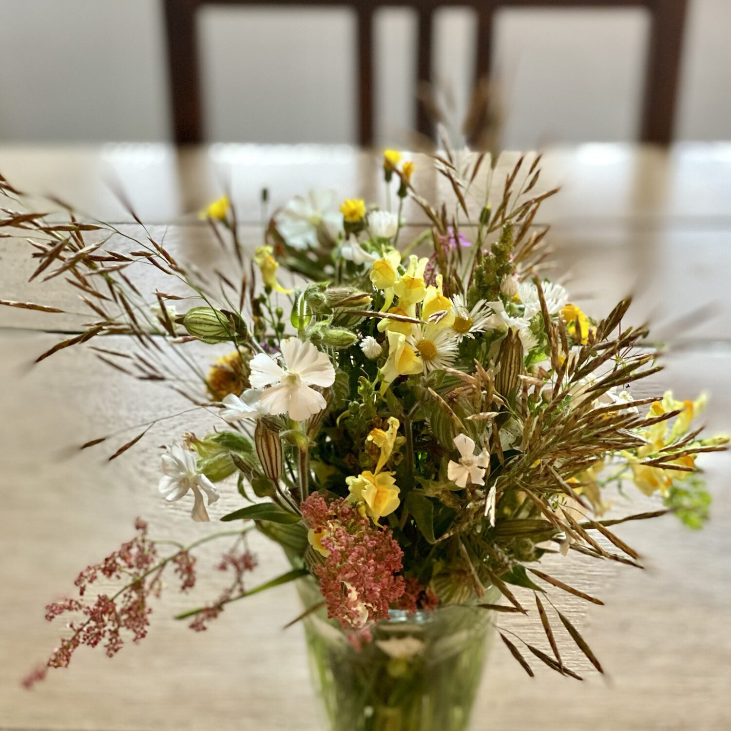Die Blümchen habe ich gestern am Wegesrand gepflückt. Die Ausbeute wirkt, als ob noch Sommer wäre.