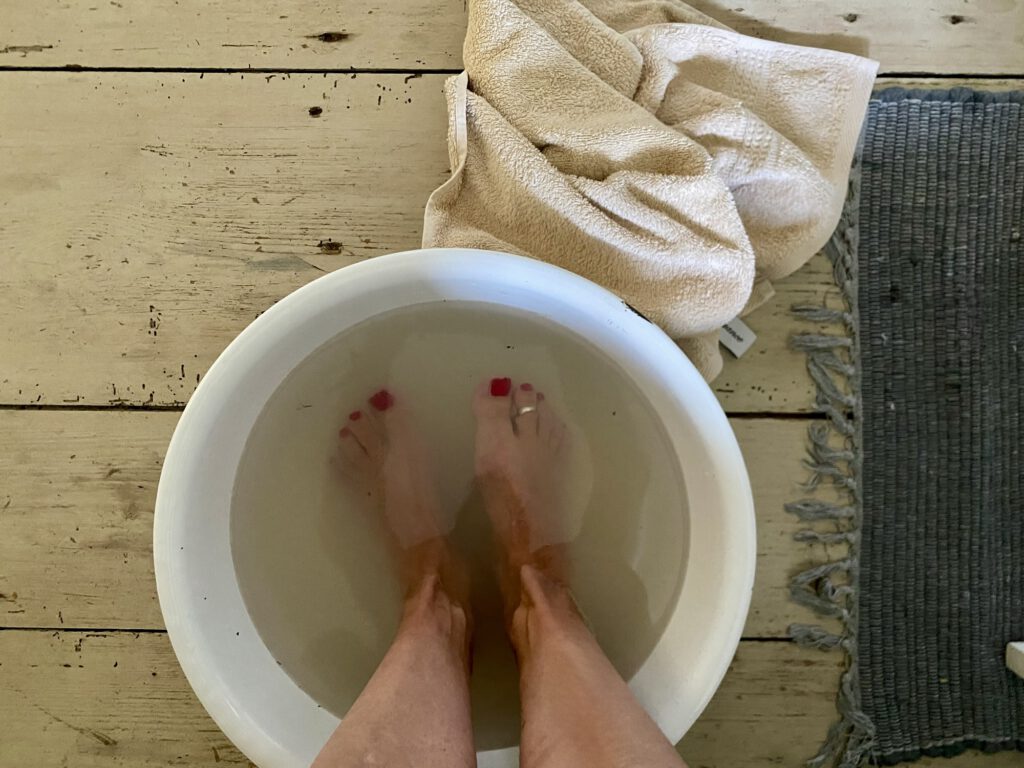 Ich nehme das Reel mit der Michaelswaage auf (für Instagram). Das dauert ewig, weil es echt schwer ist, die Botschaft in 90 Sekunden rüberzubringen, und weil ich mich natürlich auch mal verspreche oder verhaspele. Es erfordert viele Versuche, und zum Schluss komme ich mir ein bisschen blöd vor. Und habe eiskalte Füße, weil ich barfuß war. Also nehme ich ein Fußbad.