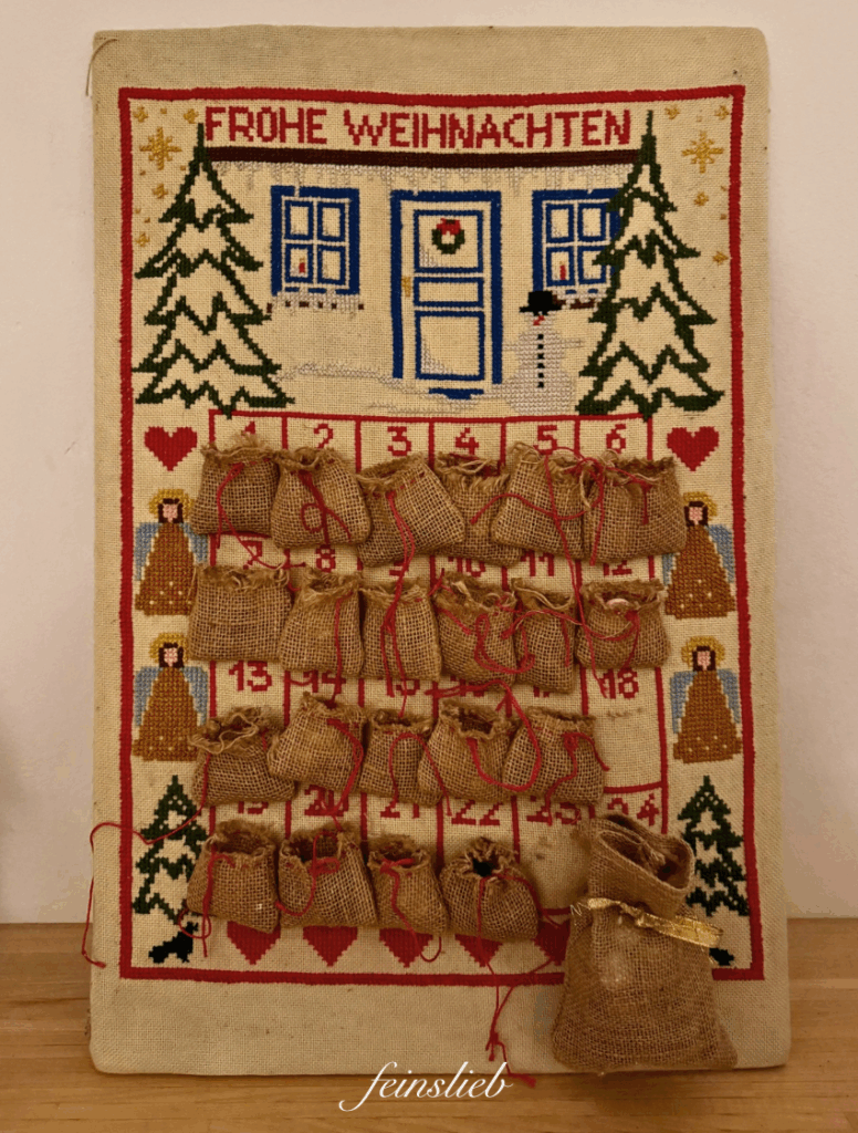 Wie toll ist denn bitte der Adventskalender deiner Kindheit?? Was sich deine Mama damals schon Arbeit gemacht hat und er wird immer noch benutzt.