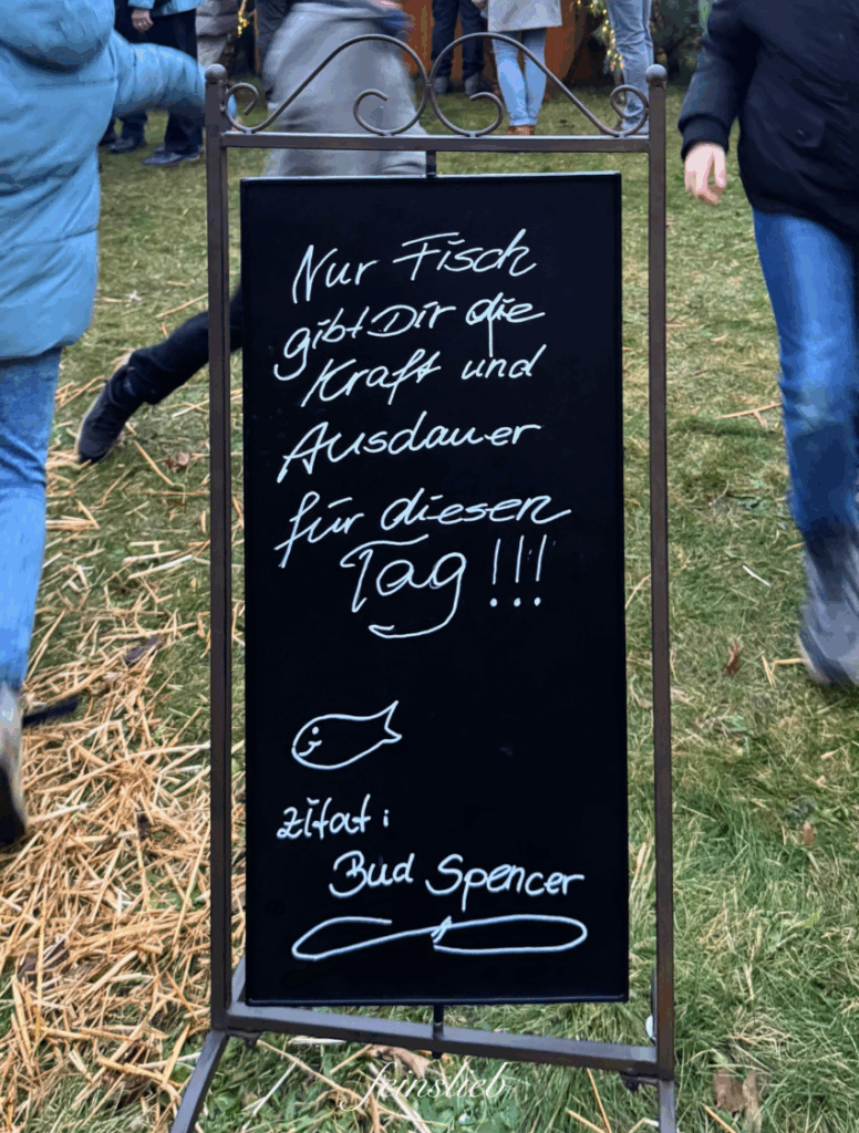 Hier in der Gegend wird viel gefischt, weil es viele Gewässer gibt (Flüsse und Seen). Der Fischereiverein verkauft Fischbrötchen mit frischem Räucherfisch. Schmeckt richtig gut! — Nur ob Bud Spencer das gesagt hat, wage ich zu bezweifeln 🙂