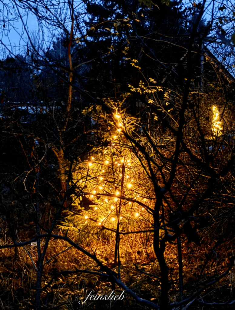 Auf dem Nachbargrundstück ist wieder ein kleiner Baum erleuchtet. Ich mag das sehr.