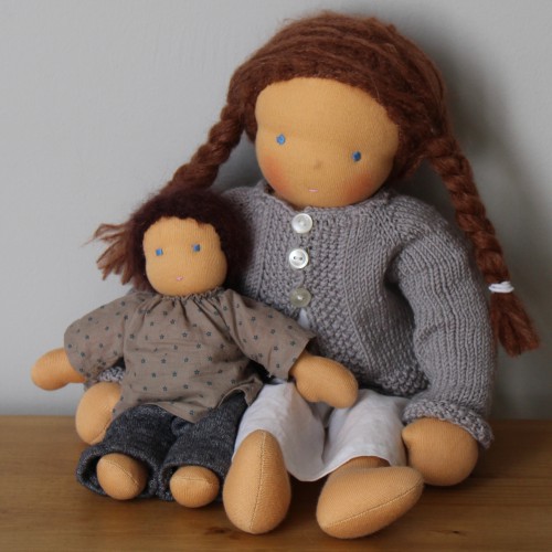 Klein-Maja (17 cm) und Tamta (40 cm) mit Kaschmir-Strickjacke