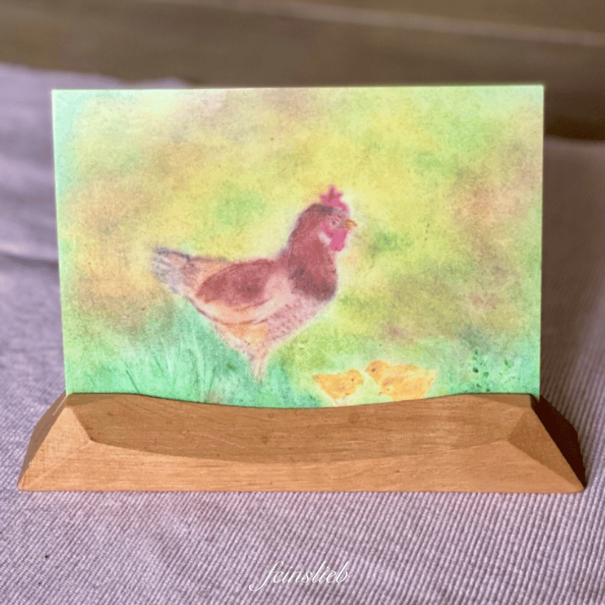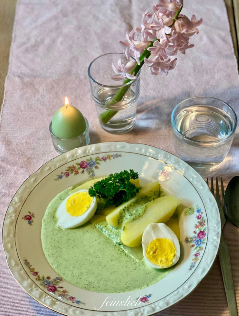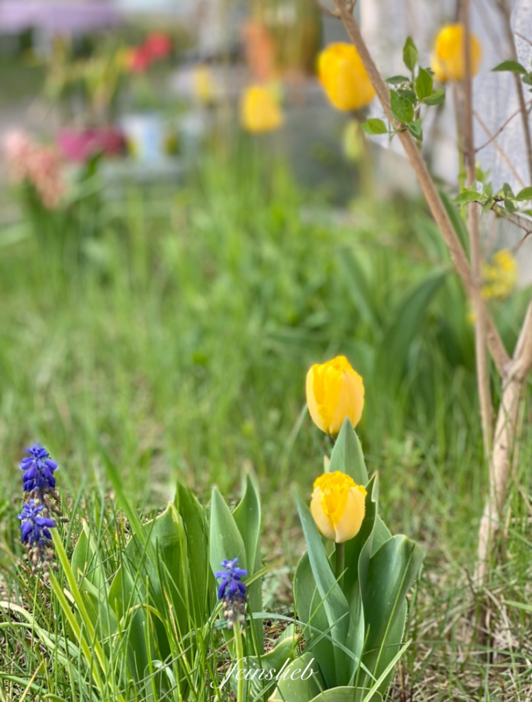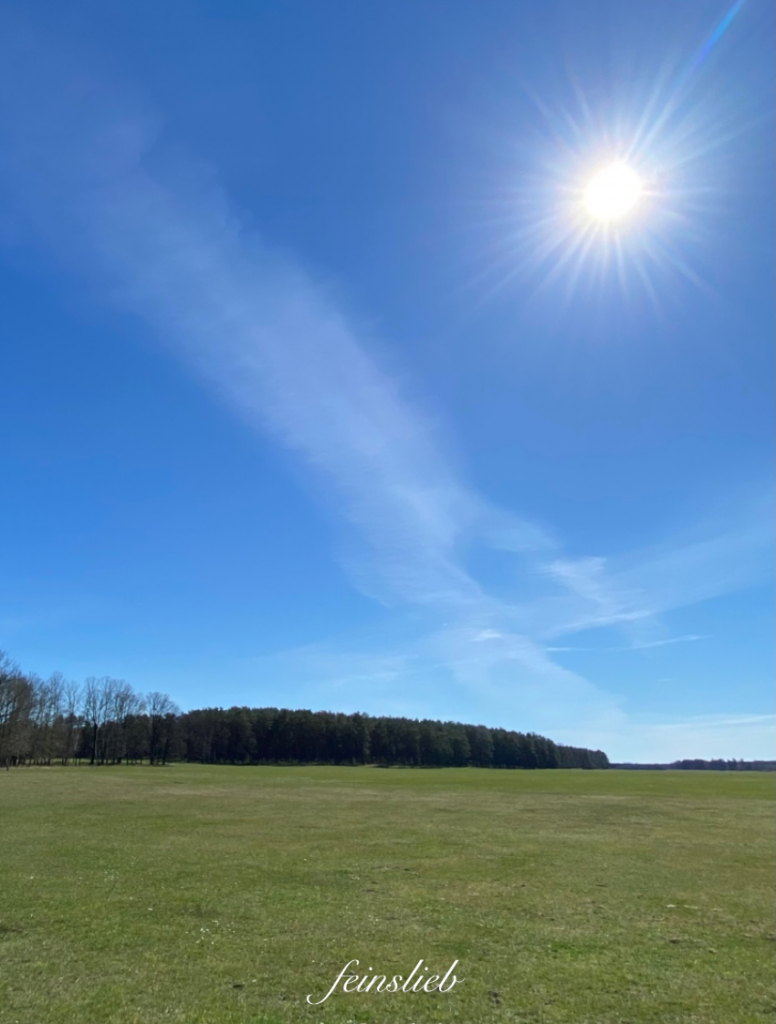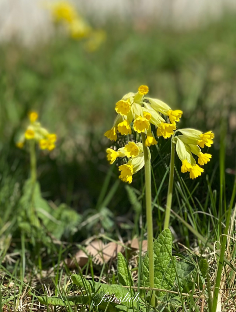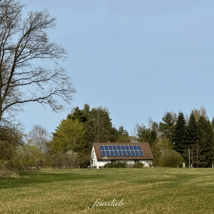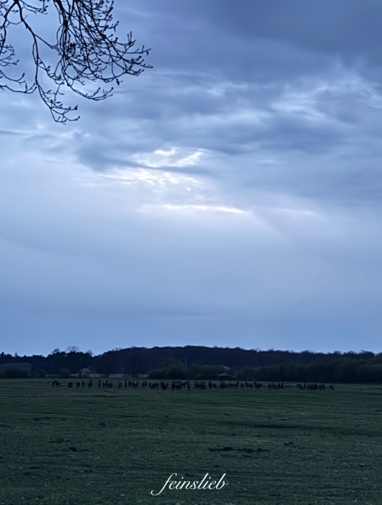 Wir sind schon am Nachmittag auf dem Land angekommen. Das Wetter ist herrlich. Und der Pflaumenbaum blüht.Rund ums Haus blühen die Schlüsselblümchen. Hildegard von Bingen bezeichnete die Schlüsselblume als „Himmelschlüssel“. Dieser Name geht auf die Vorstellung unserer germanischen Vorfahren zurück, dass die Blumen der Schlüssel der Göttin Freya sind, mit denen Freya das Tor aufschließt und den Frühling hereinlässt.Am Schuppen blühen noch mehr Blumen. — Übrigens, ich habe zwei Videos (Reels) auf Instagram gemacht mit Rundgängen über unser Grundstück auf dem Land. Kannst du anschauen, wenn du mir auf Instagram folgst, @feinslieb_jahreskreis (es sind die letzten beiden Beiträge vom 17. und 18. April).Im Haus steht noch die Oster-Deko herum.Ich stelle jetzt diese Postkarte auf.Hundespaziergang um 20:30 Uhr über die Felder und Wiesen. Die Hunde haben hier auf dem Land immer so eine große Freude am Schnuppern und Rennen.