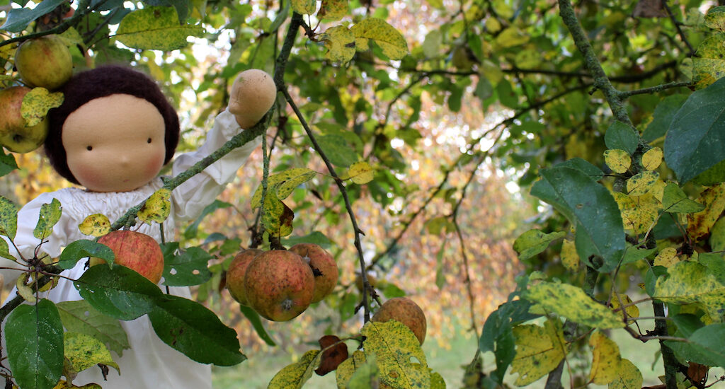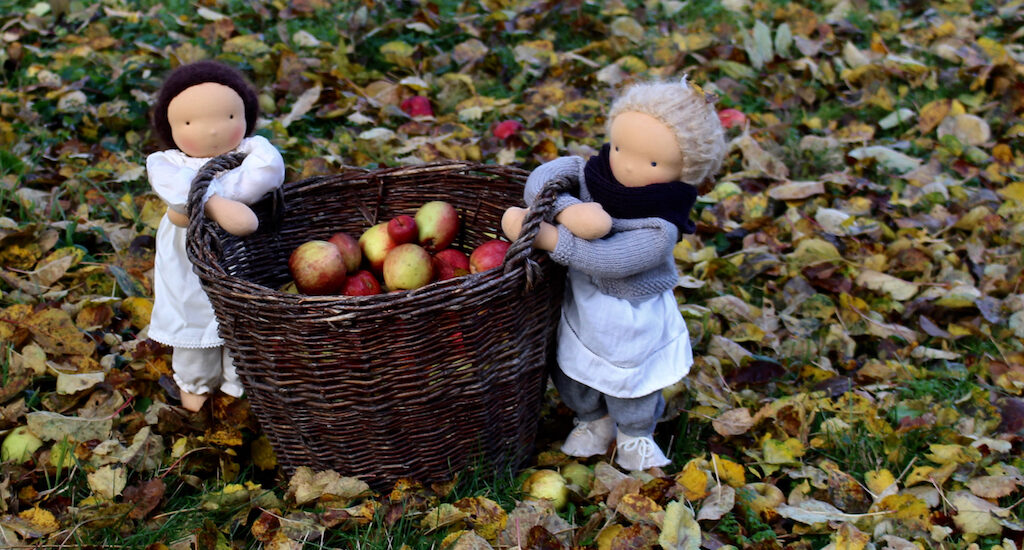 feinslieb Waldorf doll Sophia and Rosemary with apple basket