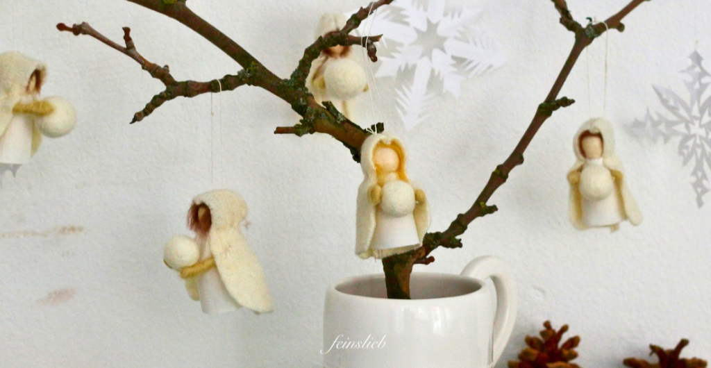 Diese winterlichen Jahreszeitentisch Puppen zum Aufhängen kannst Du leicht selber machen. Die Schneeflocken-Kinder sind nicht gefilzt: Korpus und Kopf sind Holz-Spielfiguren („wood peg…