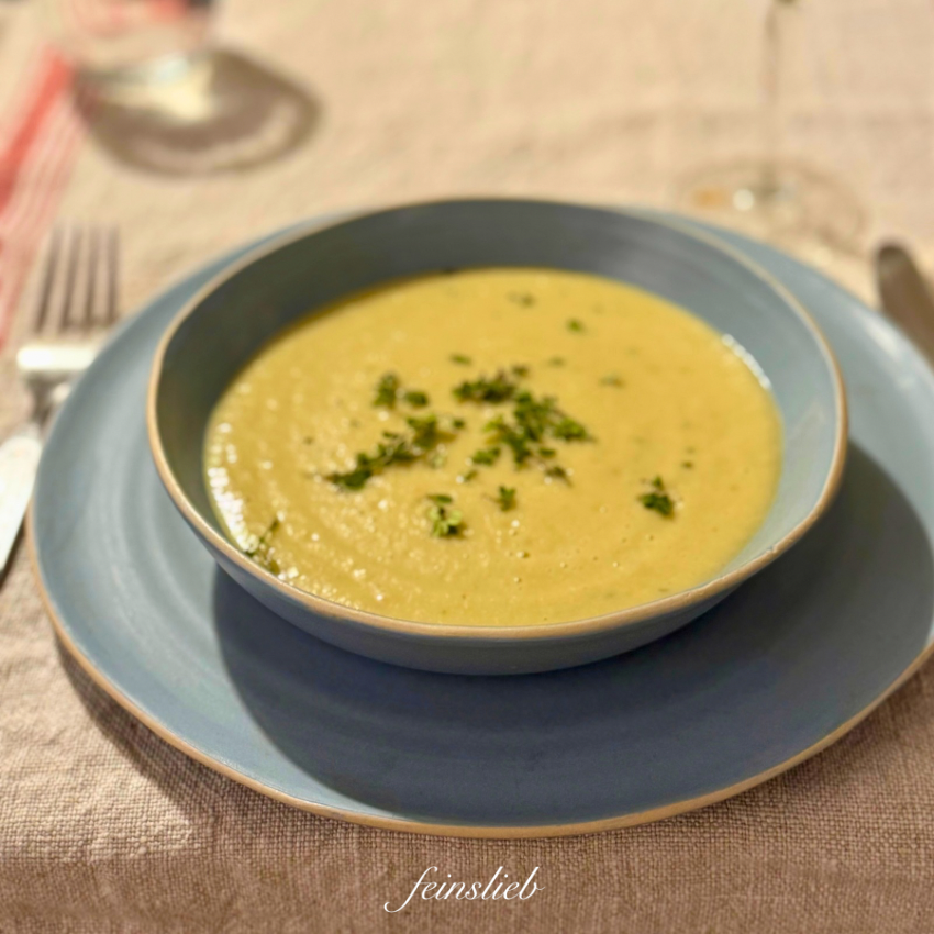 Zum Mittagessen gibt es Gemüsesuppe mit Thymian und wieder einen Salat.