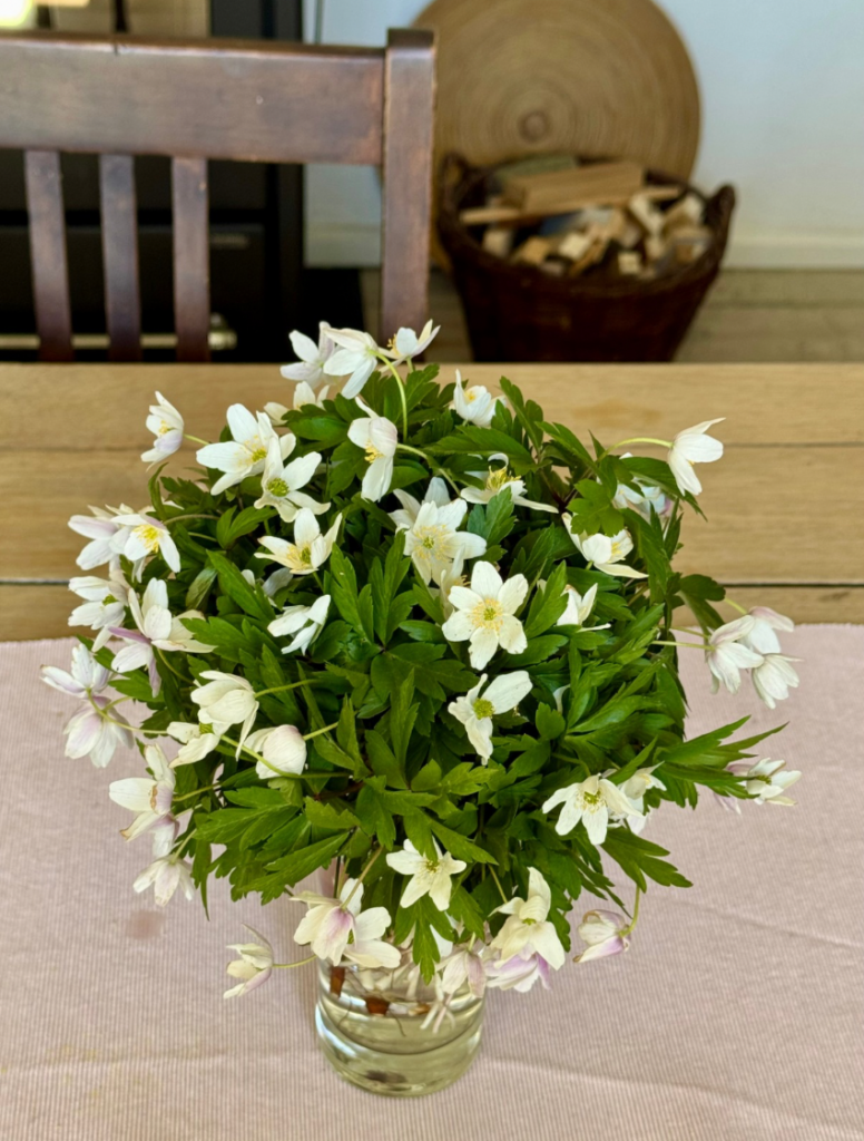 Vorsichtig Blumenpflücken geht heute schon wieder. Ich pflücke einen schönen Strauß Anemonen im Wäldchen.