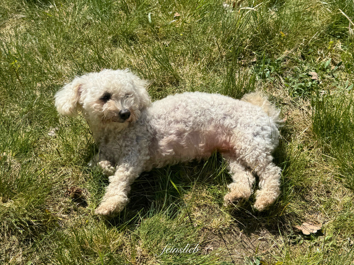 Ich sitze wieder den halben Tag mit meinem Buch auf der Bank in der Sonne. Die Hündchen gesellen sich zu mir und liegen im Gras. Sie haben neue Knochen bekommen und haben den ganzen Vormittag damit zu tun – Kauen, Beißen, die Knochen herumtragen und verstecken, immer wieder „ausgraben“ und wieder darauf herumkauen. Knochen sind wirklich toll für Hunde.